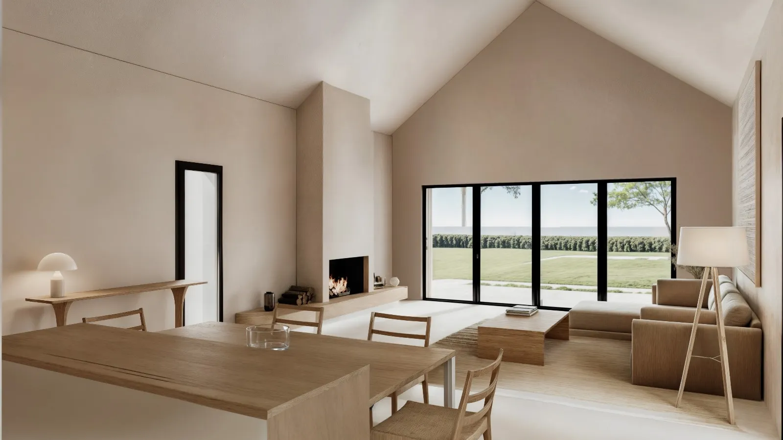 La isla central, que incluye zona de cocción y superficie de trabajo adicional, se integra perfectamente con la mesa de comedor en madera arena y patas metálicas negras, creando un entorno cohesionado ideal tanto para el día a día como para recibir invitados. Una propuesta de cocina que refleja diseño de vanguardia, calidad en los materiales y una cuidada selección cromática, ideal para quienes buscan un hogar moderno y acogedor.