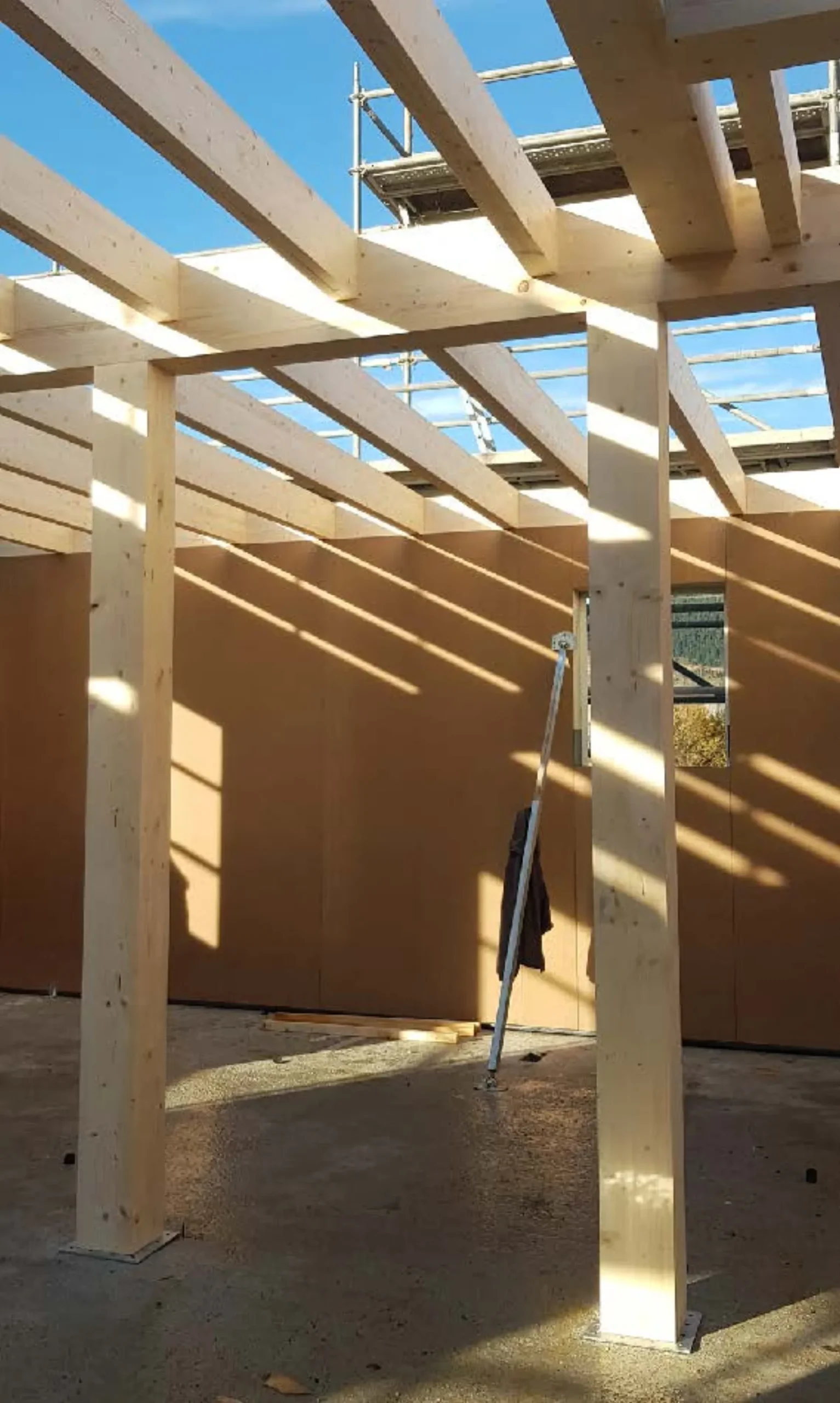 El entramado ligero ofrece ventajas significativas en eficiencia energética y sostenibilidad. Consigue mejorar de manera importante la transmitancia térmica respecto a otros sistemas como el CLT, el Steel Frame o el Hormigón Prefabricado para el mismo espesor de muro. Integra en un único paquete la estructura portante, el aislamiento térmico-acústico y los cerramientos, lo cual acelera notablemente la ejecución del proyecto y maximiza la superficie útil interior.